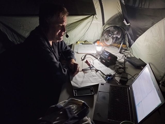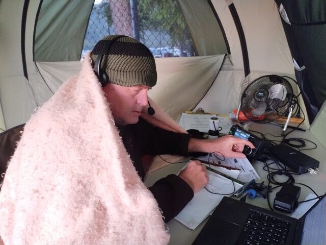 And a special thanks to Clay (N5YJZ) and Nick (KZ2V) for towing the WVARA tower trailer and the porta-potty trailer, Bobby (K0XI) for his van, and Kevin (KK6VF) who went out of his way to make numerous things come together – most notably our site’s AC power distribution and the solar array.