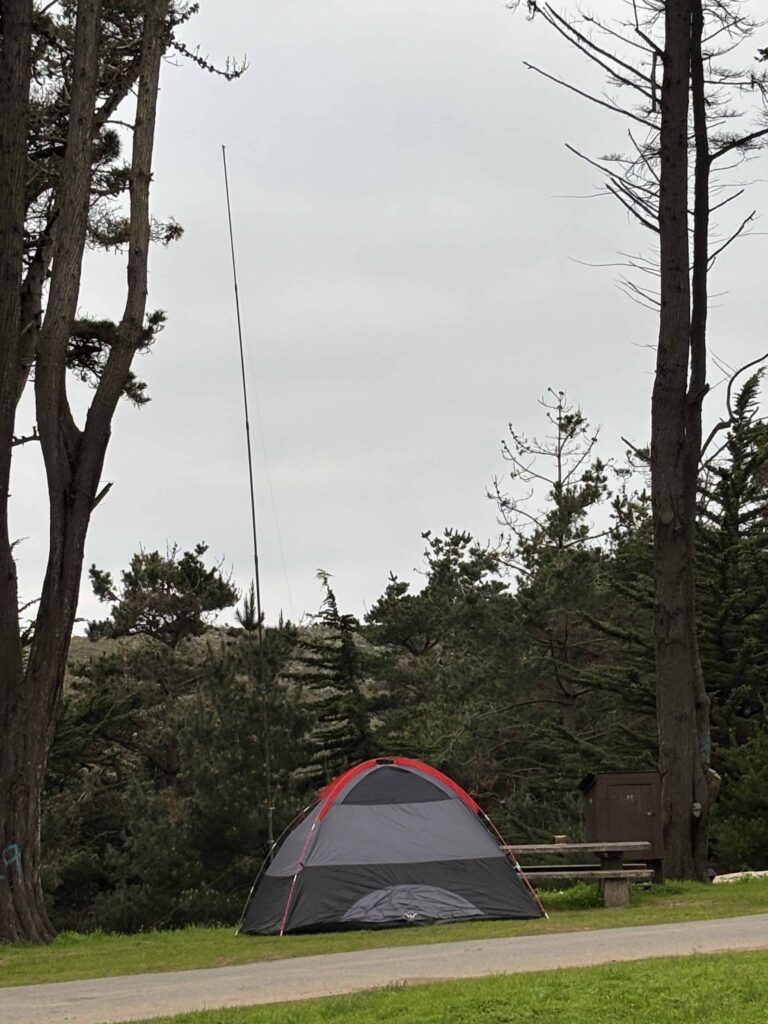 Winter Field Day is a great opportunity to get outdoors, gain experience assembling equipment in the rough, and operate a station under potentially-challenging winter conditions. This year the West Valley Amateur Radio Assoc (WVARA) operated QRP in the 7-transmitter Outdoor category from a campground at Sunset Beach State Park near Watsonville. The weather this year was cool with highs in the 60s, nighttime lows in the 40s and no rain.